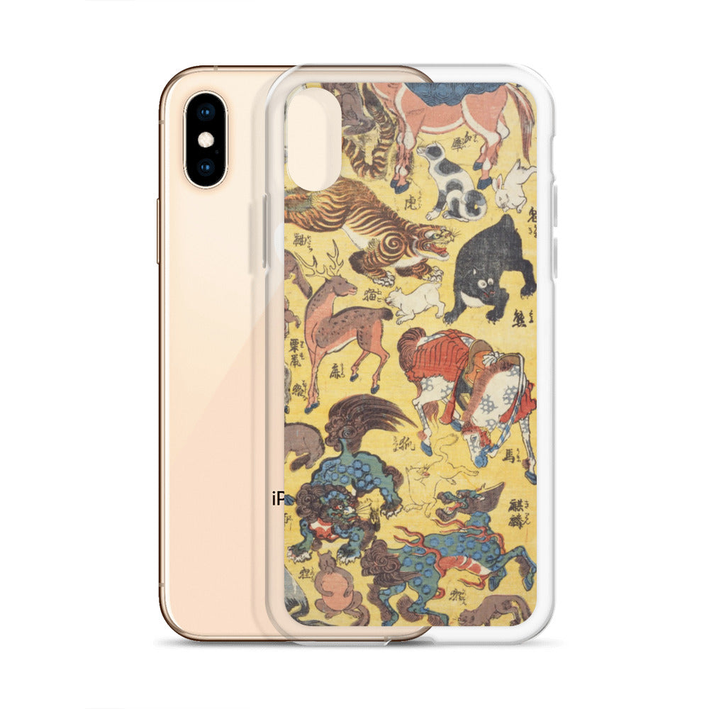 大正レトロ けだもの尽 iPhoneケース(縦配置)